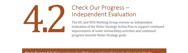 An independent evaluation takes place every five years to assess progress and outcomes of activities undertaken by water partners. Evaluations help identify emerging challenges and provide recommendations to informs the subsequent Action Plan.